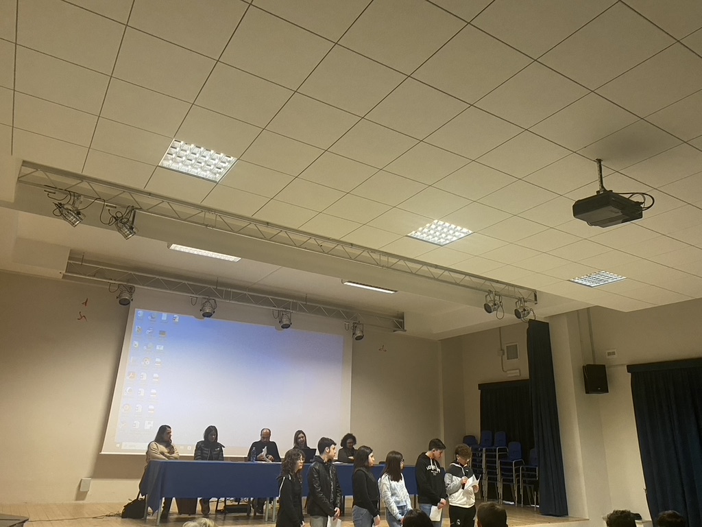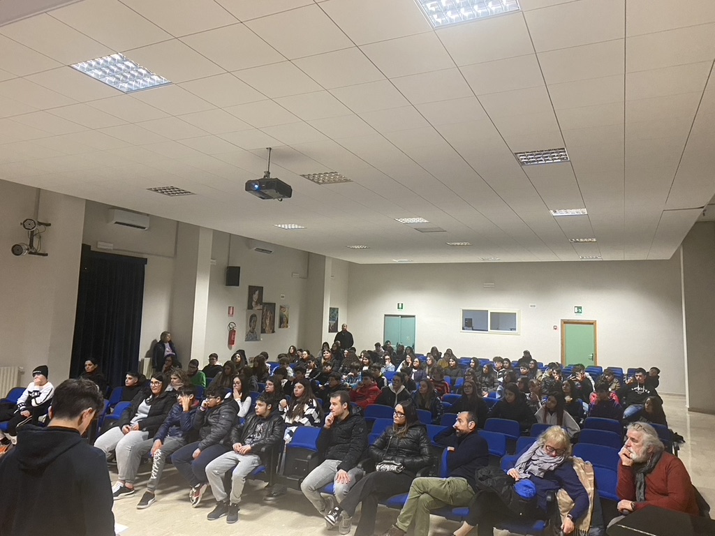 Gli alunni delle classi III scuola secondaria, plessi Riccobono e Caronia, incontrano lo scrittore Martino Lo Cascio, due volontari della cooperativa Placido Rizzotto-Libera Terra e una delegazione di Libera Prato e la dirigente scolastica Maria Grazia Ciambelloti.